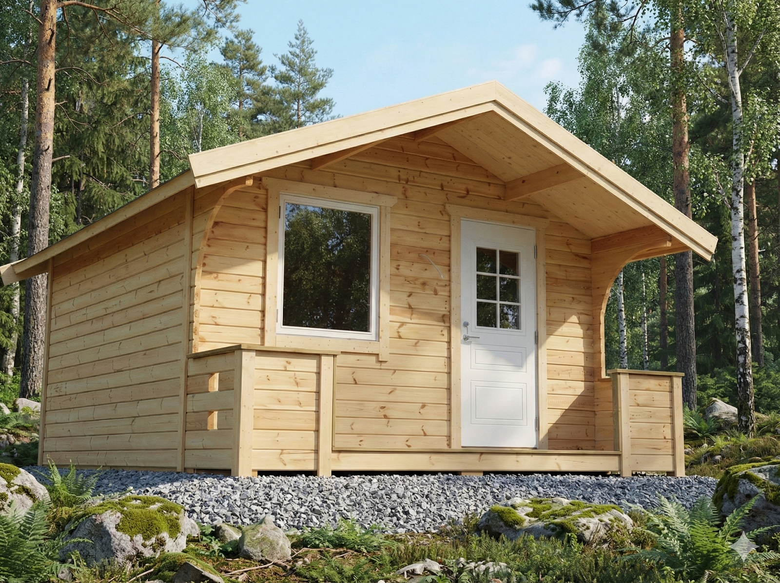 Friggebod Skäret 15 kvm är en ljus och mer påkostad friggebod för dig som vill ha extra komfort och ett elegant uttryck. Modellen skiljer sig från våra övriga friggebodar genom sitt större fönster och en rejäl vitmålad ytterdörr, vilket ger både bättre ljusinsläpp och ett mer exklusivt intryck.